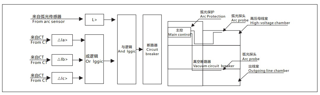 中低压母线因其出线多,操作频繁,设备绝缘老化和机械磨损,再加上运行条件恶劣等因素造成其故障机率比高压、超高压 母线高得多。长期以来,中低压母线保护一直未得到足够重视,当发生故障时处理方式大多采用带有较大延时的后备保护来切 除,有时故障反而被进一步扩大。电力系统多年的运行状况表明,中低压配电柜内部弧光保护对人身及设备带来极大的损害,各 国电力专家已经开始对电弧光故障进行了深入研究并引起了高度重视。系统构成